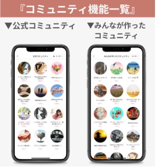 「アンジュ」には、「コミュニティ」という機能があります。コミュニティは「公式コミュニティ」「みんなが作ったコミュニティ」の2種類あります。