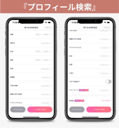 休日の過ごし方や、マッチングしたらどのように仲を深めていきたいかなど、事前に相手の価値観や考え方が分かるので、マッチング後のギャップを感じることも少なくなります。あなたのプロフィールも、できるだけ細かく自分のことがわかる内容にしておくことで、相手の女性からの絞り込み検索にヒットするようになりますよ。